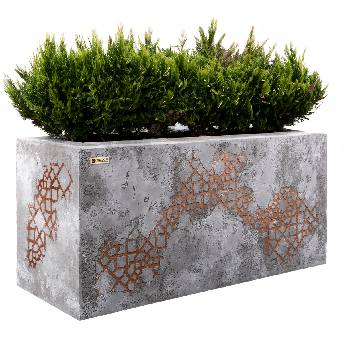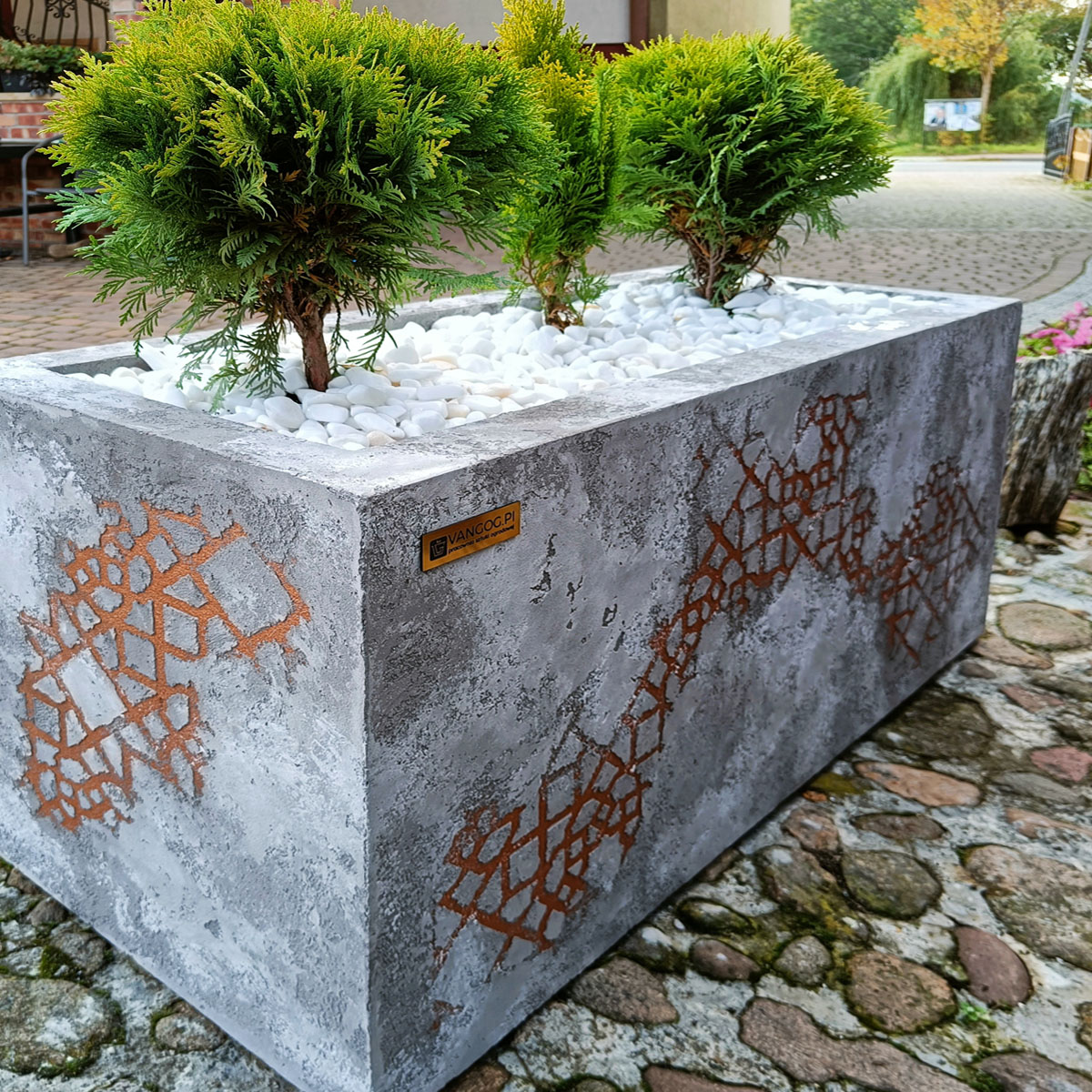 Miedziany wzór, przeplatający się między odcieniami szarości, dodaje donicy Maroko nie tylko oryginalnego uroku, ale także nuty egzotyki i orientalnej magii. Ta donica jest nie tylko funkcjonalnym pojemnikiem na rośliny, ale również dziełem sztuki, które nadaje przestrzeni wyjątkowego charakteru.