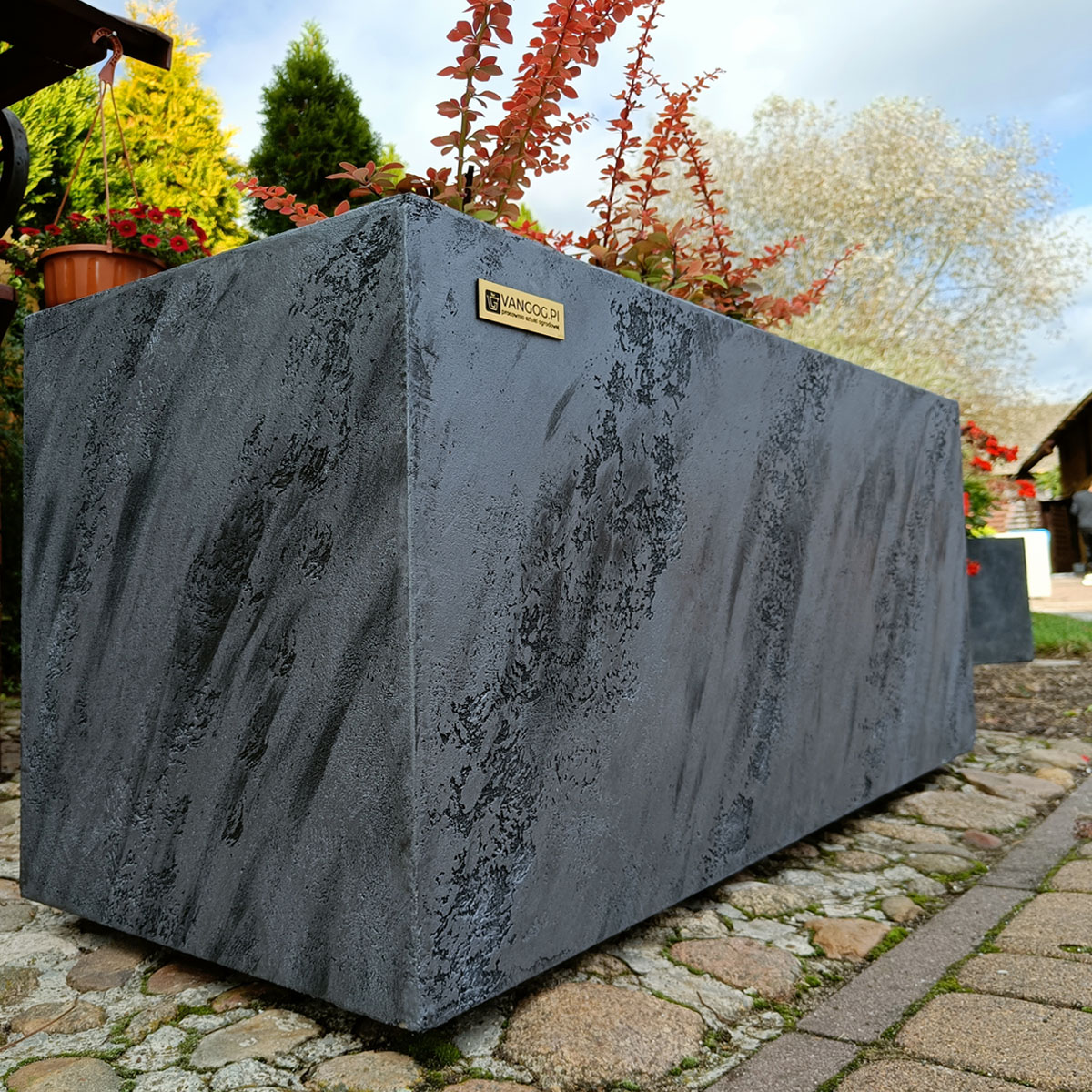 Donica Silver Stone to oryginalne rozwiązanie, które zachwyca swoim eleganckim i nowoczesnym stylem. Jej powierzchnia przypomina srebrną połyskującą łunę, na której tle wyłania się głęboka czerń, tworząc efektowny kontrast. Donica Silver Stone idealnie wpasowuje się w stonowane pomieszczenia utrzymane w loftowym stylu, gdzie przeważają surowe materiały, industrialne akcenty i neutralne kolory. Jej srebrny połysk nadaje wnętrzu subtelności i blasku, podczas gdy głęboka czerń dodaje mu charakteru i głębokości.