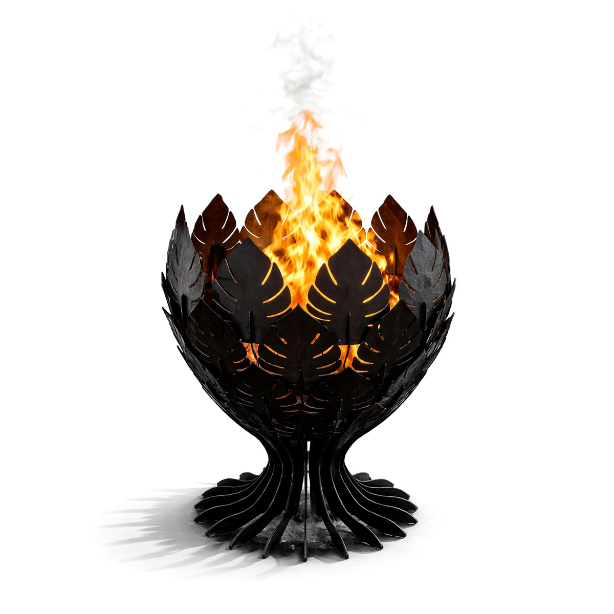 Ażurowa konstrukcja inspirowana motywem roślinnym tworzy dynamiczną, półotwartą misę, w której płomień staje się centralnym punktem przestrzeni. W ciągu dnia model zachwyca dekoracyjną formą. Po zmroku światło ognia przenika przez wycięcia, budując wyjątkową grę cieni na tarasie i w ogrodzie.