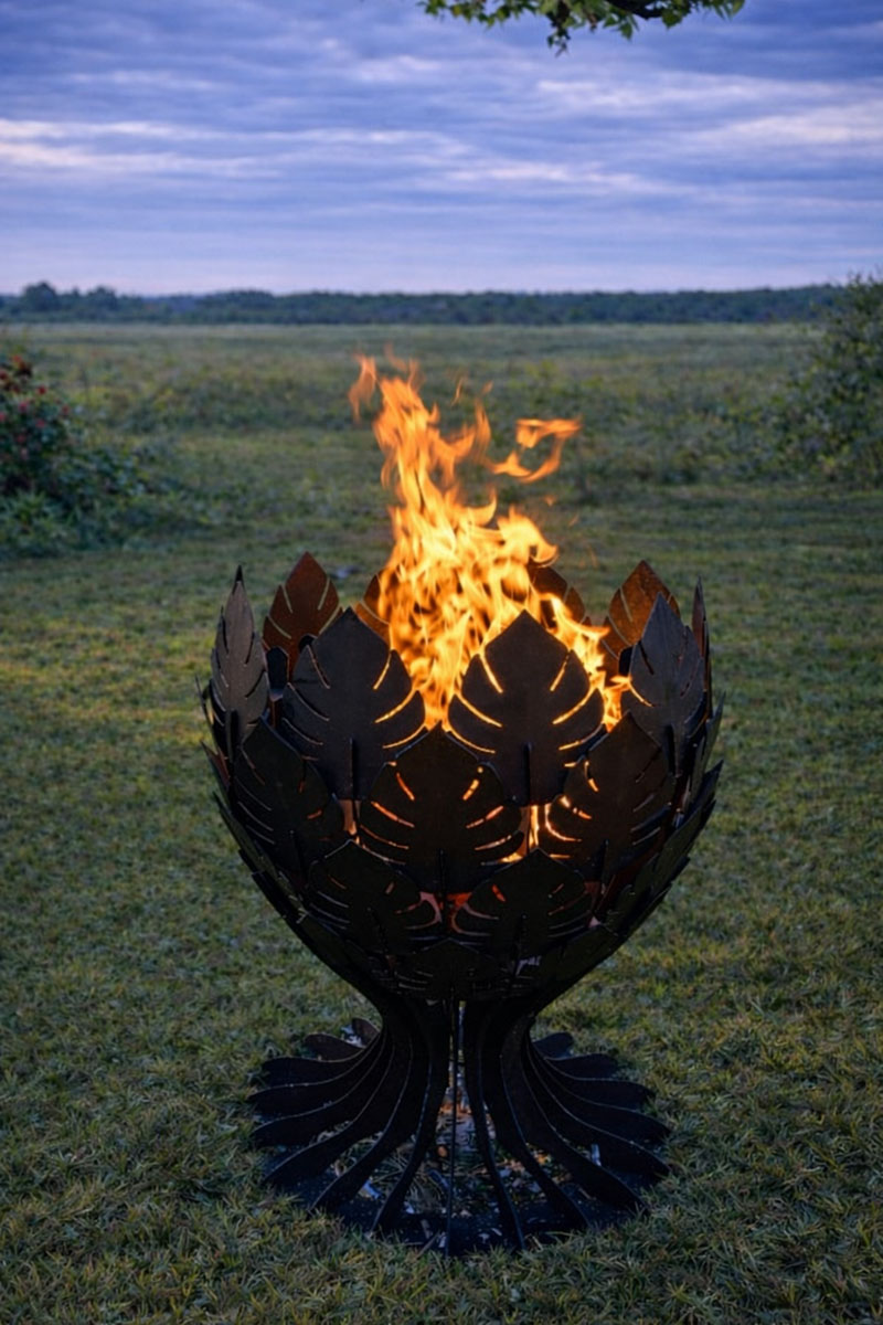 ✔ Charakter: designerskie palenisko ogrodowe o motywie roślinnym