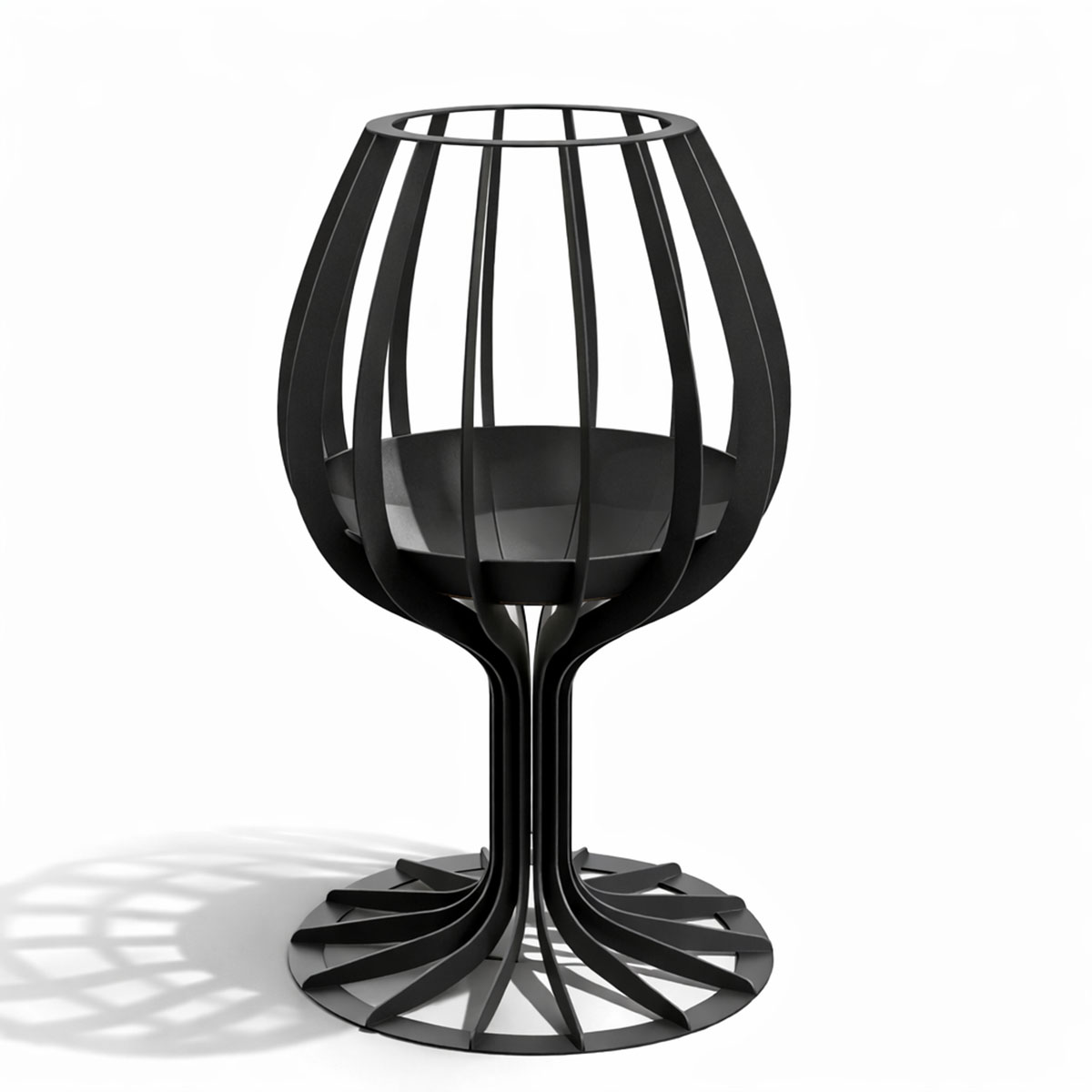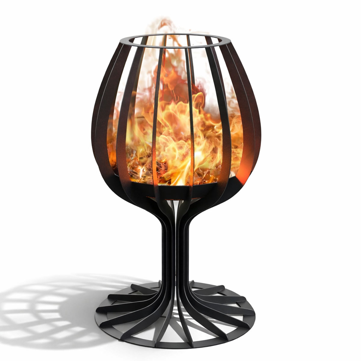 Dynamicznie wygięte ramiona tworzą otwartą, promienistą konstrukcję, która nie tylko efektownie eksponuje płomienie, ale również zapewnia doskonały dopływ powietrza. Dzięki temu spalanie jest stabilne, a ogień żywy i naturalny. Helios Cup przyciąga wzrok zarówno w ciągu dnia — jako wyrazisty element nowoczesnej aranżacji — jak i po zmroku, kiedy tworzy spektakularną grę światła i cienia.