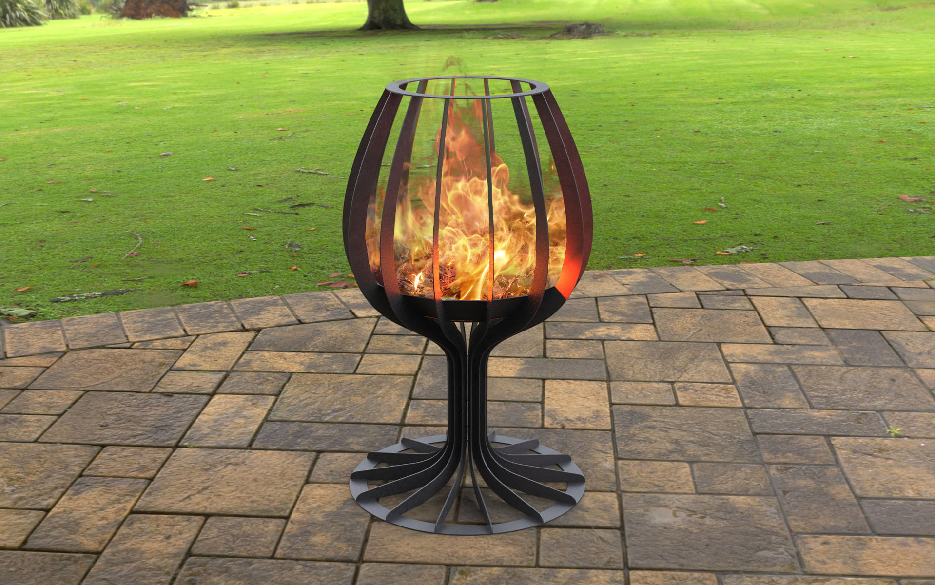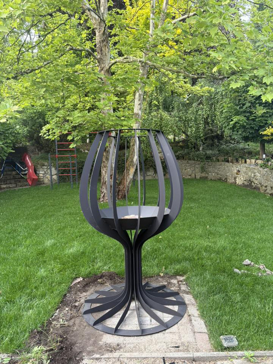 Otwarta konstrukcja z dynamicznie wygiętymi ramionami doskonale eksponuje płomienie i zapewnia naturalną cyrkulację powietrza, tworząc wyjątkową atmosferę zarówno za dnia, jak i po zmroku. Helios Cup wykonany jest z solidnej stali konstrukcyjnej o grubości 3 mm, zabezpieczonej farbą żaroodporną odporną na wysokie temperatury i warunki atmosferyczne.