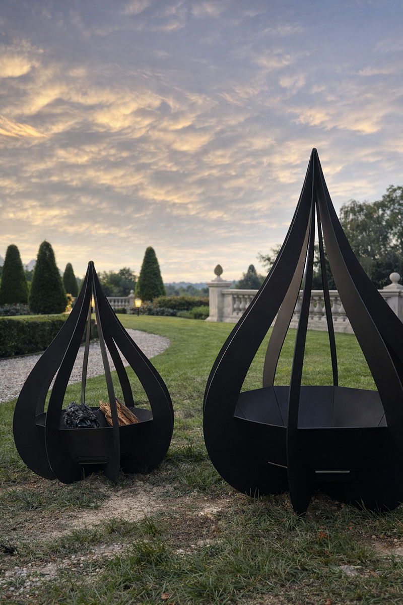 Phoenix Bloom XL to nowoczesne, designerskie palenisko ogrodowe stworzone z myślą o współczesnych ogrodach, tarasach i przestrzeniach architektonicznych. Jego rzeźbiarska, organiczna forma inspirowana płomieniem, płatkiem lub kroplą wody sprawia, że pełni funkcję zarówno paleniska, jak i artystycznej rzeźby ogrodowej.