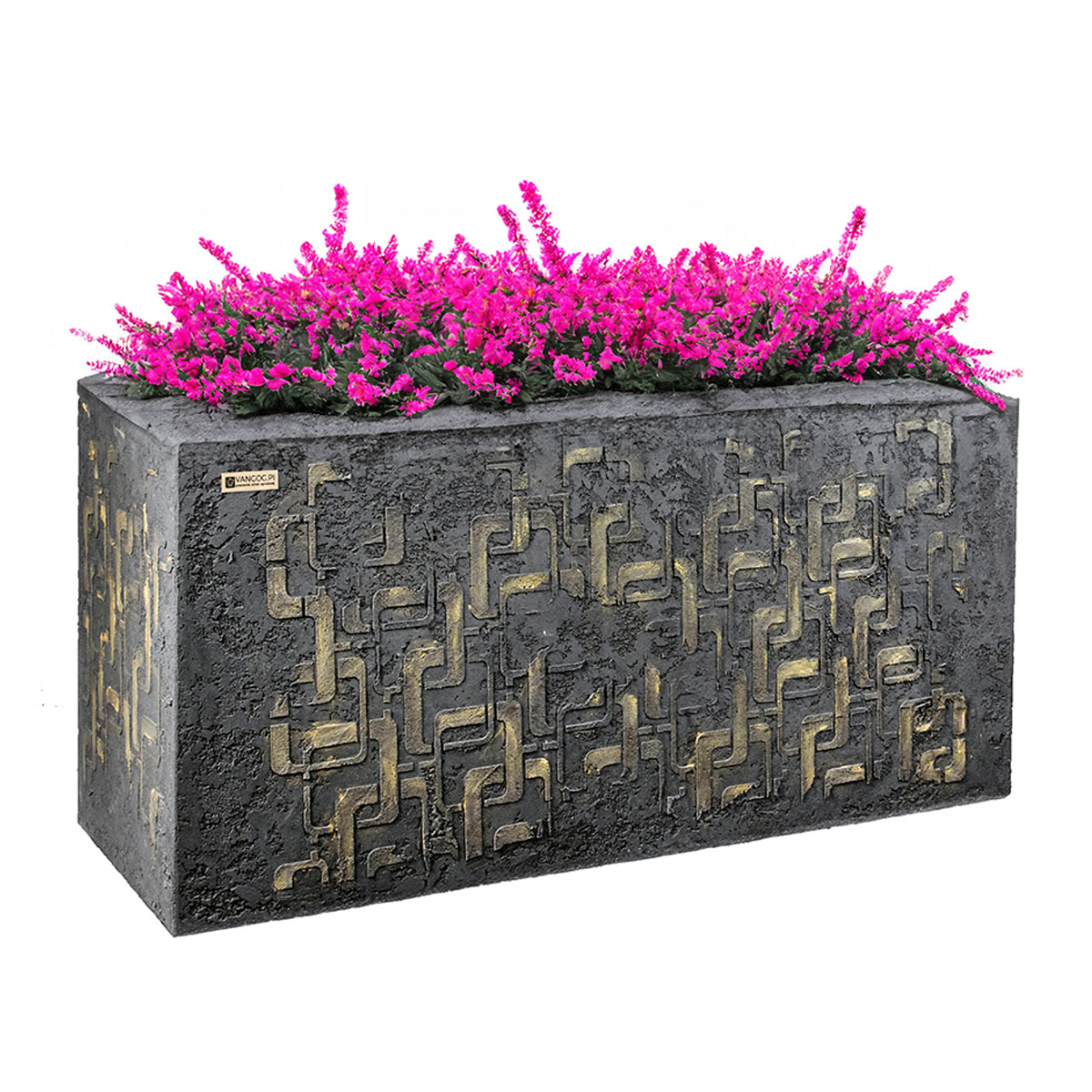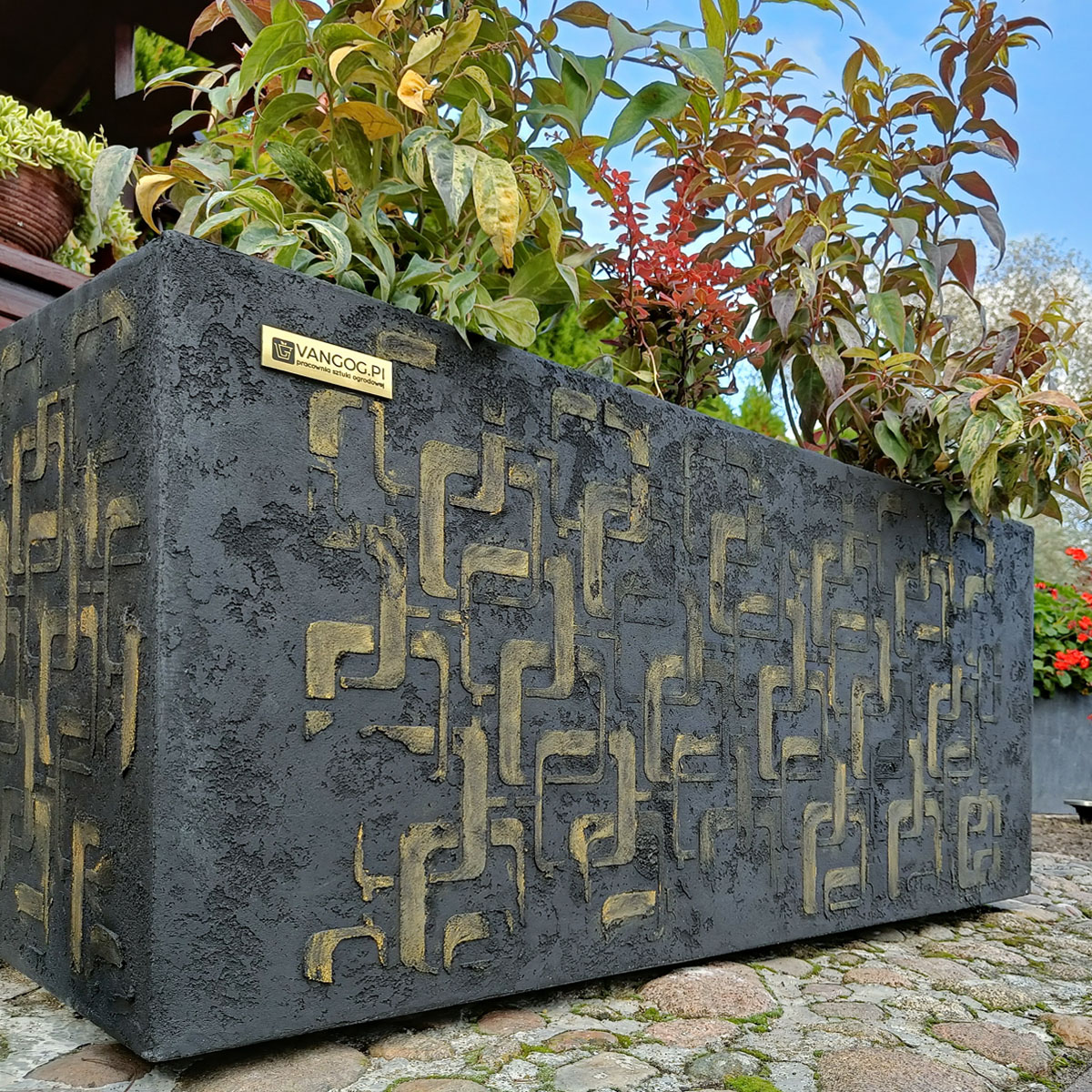 Donica Las Vegas to majstersztyk, który zachwyca swoim luksusowym stylem i niebagatelnym wyglądem. Jej przewaga czerni, połączona z pozłacanym wzorem, nadaje jej niezwykłej szlachetności i wyjątkowego charakteru. To połączenie barw jest jak taniec światła i cienia, który sprawia, że donica emanuje elegancją i luksusem.